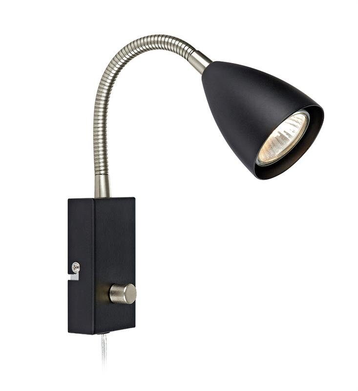 Ciro stilren vägglampa. Tillverkad i metall med en inbyggd dimmer på väggplattan. Upphängning med hjälp av U-bygel. 2 meter transparent sladd som kopplas i väggkontakt. GU10 sockel för max 7W ljuskälla.