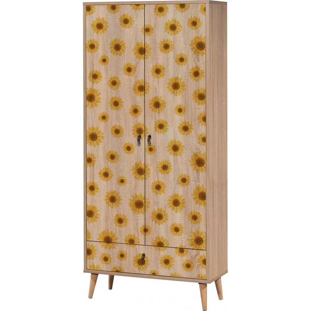 Garderob av spånskiva med ben i massivt trä.