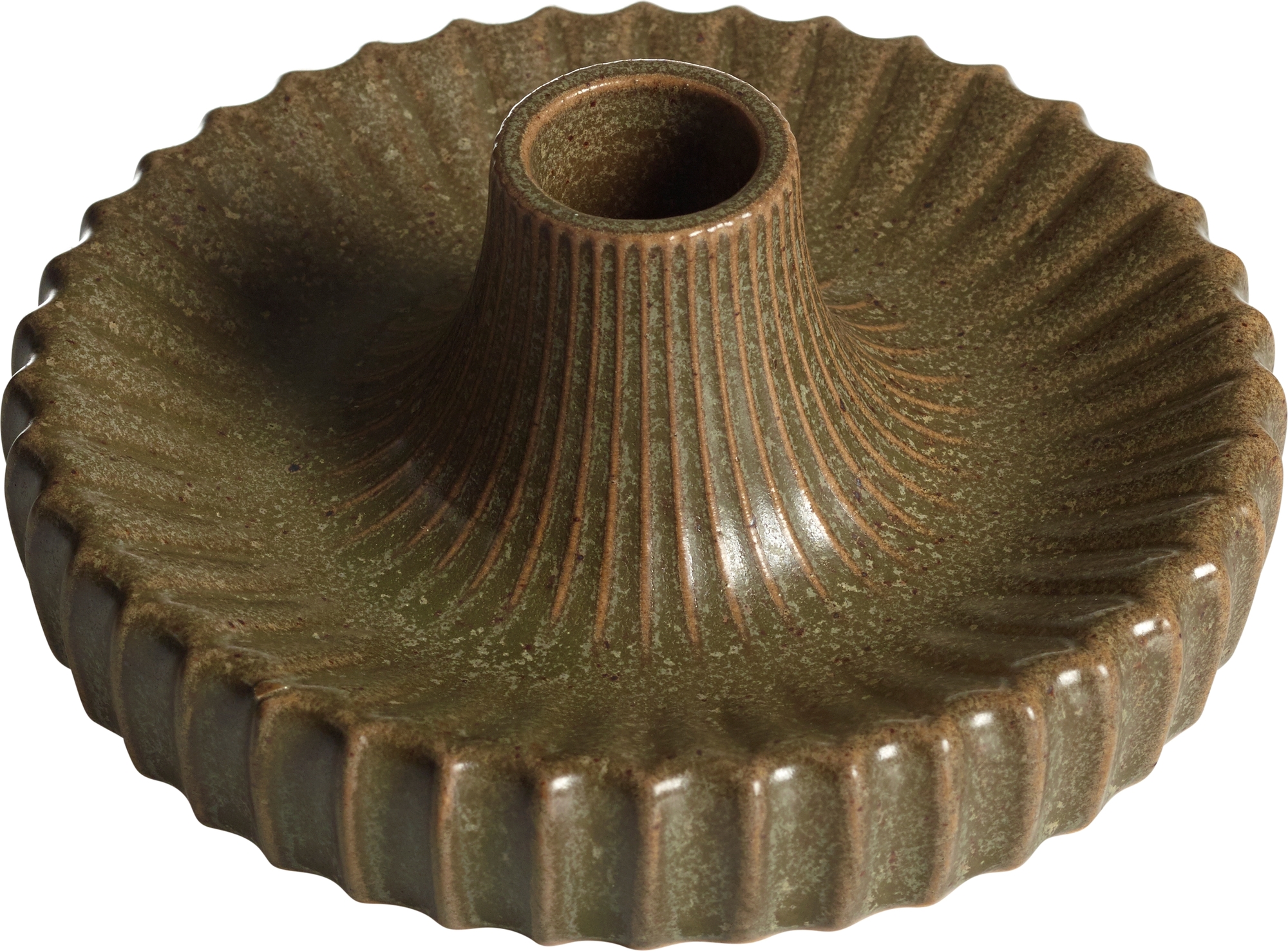 Retroinspirerad ljusstake i stengods. Finns i gul, brun och grön. Vacker som den är eller tillsammans med de andra färgerna.