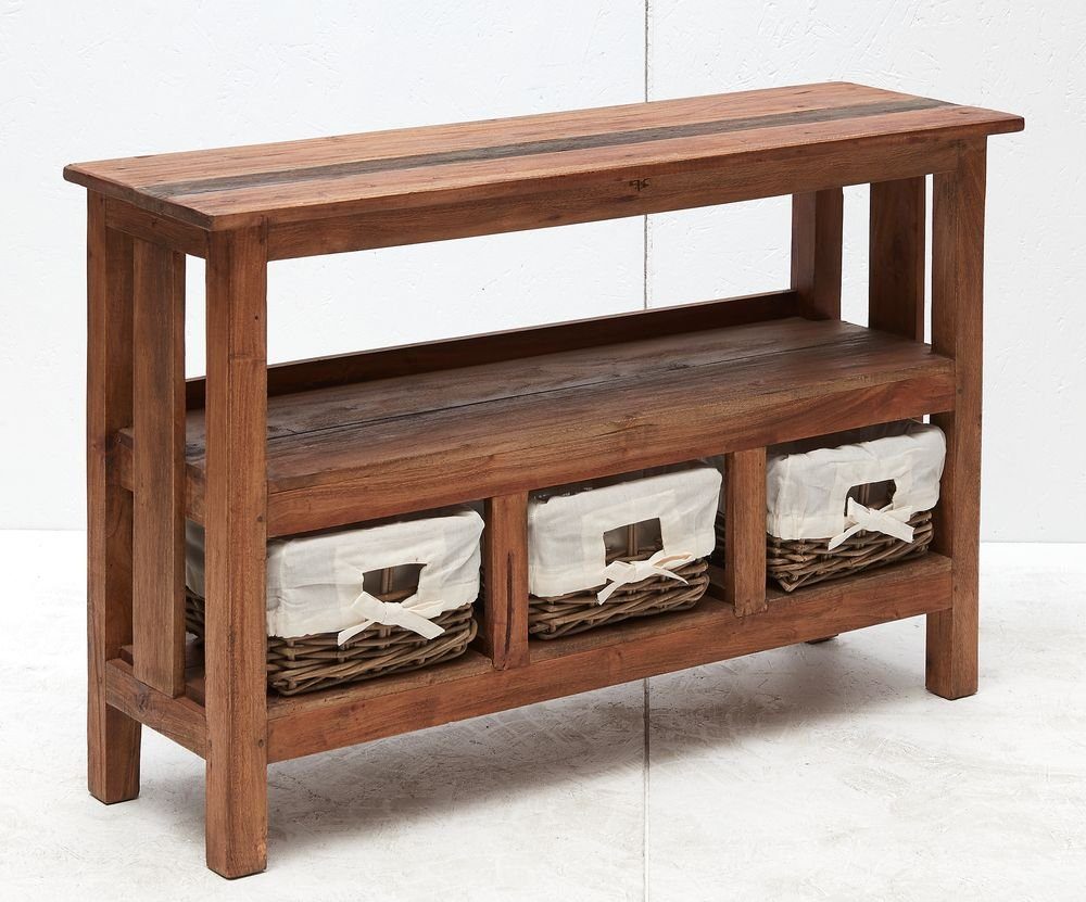 Clara skänk med gott om förvaringsmöjligheter. Tre dekorativa flyttbara korgar med prydliga detaljer. En möbel i vintage. Stadig i massivt återvunnet trä från Indonesien.