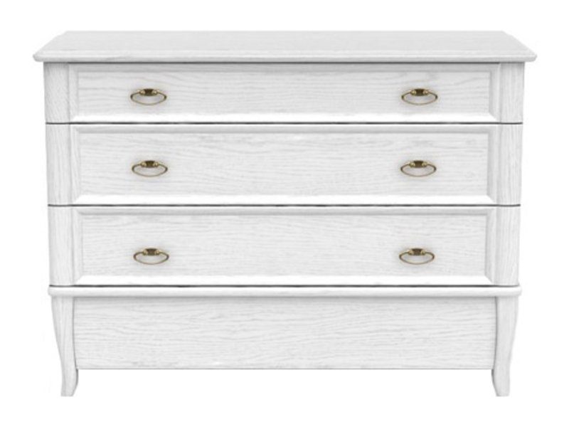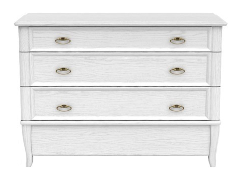 Robust och prydlig byrå i vitt. Gott om plats för förvaring med tre rymliga lådor. Handtag i metall som en dekorativ detalj. Kan med fördel kombineras med andra möbler i samma serie.