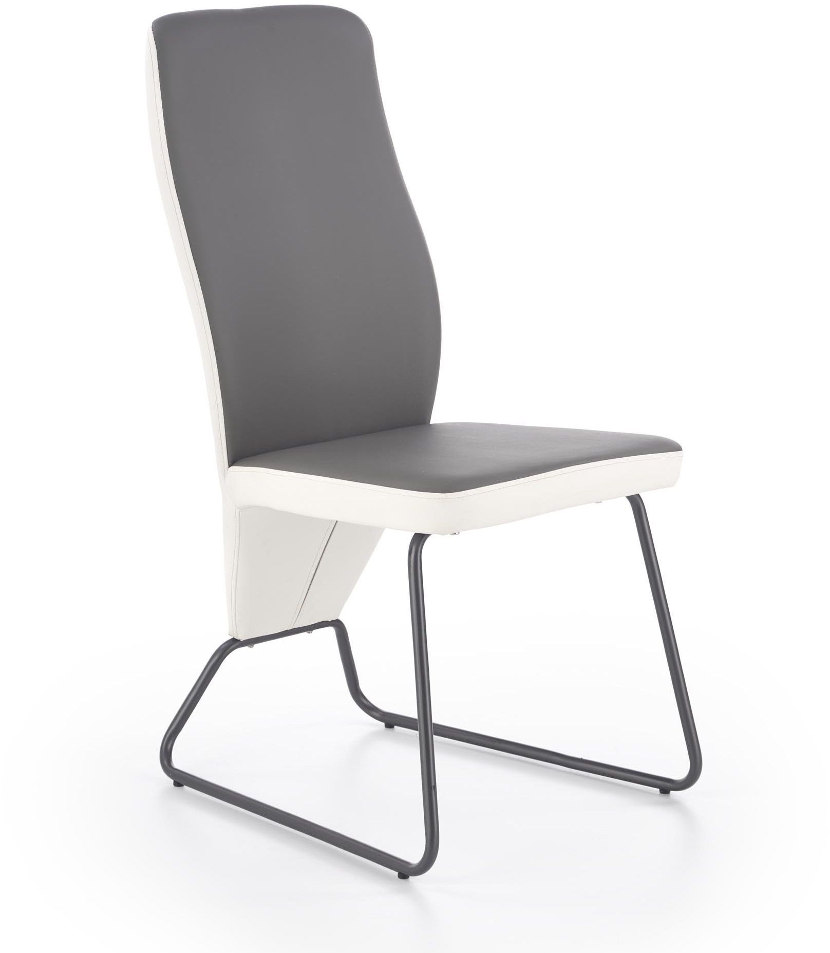 En mysig matstol med en modern design. Matstolens underrede är tillverkat av pulverlackerad metall och sitsen är klädd med ett härligt konstläder för maximal komfort.