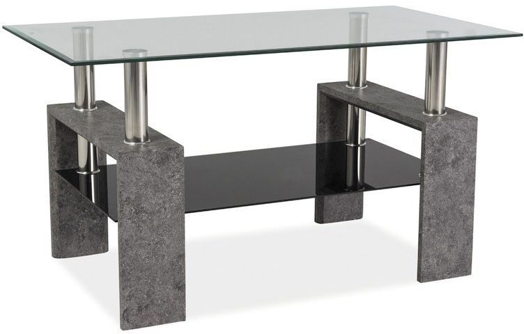 Ett härligt soffbord med en modern design. Underredet är tillverkat av MDF med ett snyggt grå marmor utförande och med detaljer av kromad metall. Bordsskivan är av härdat glas med en praktisk underhylla för smart förvaring.