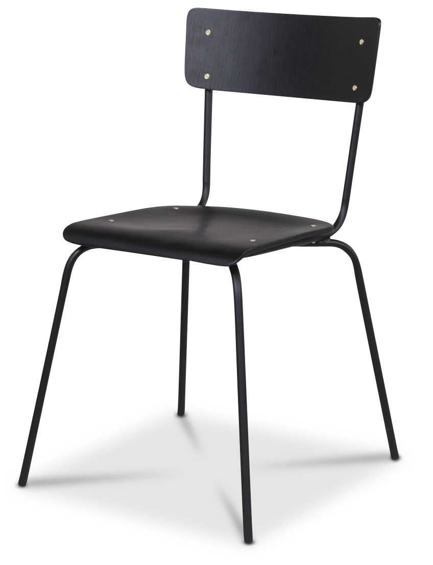 Cliff matstol en modern möbelklassiker som aldrig går ur tiden! Svartlackade metallben med svartmålad sits och rygg. Mässingsdetaljer och staplingsbar!