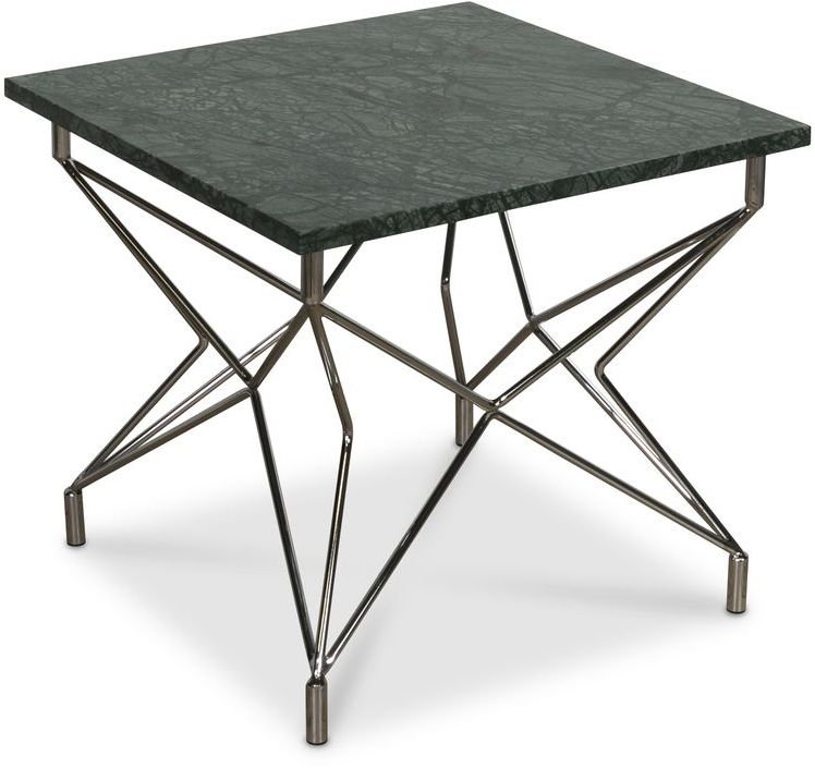 Elegant soffbord med kromade ben i metall och skiva i grön marmor. Ett modernt bord som passar in i de flesta hem. Marmor är ett naturmaterial och ingen sten är den andra lik. Skiftningar kan förekomma vad gäller färg, mönster och struktur mellan olika stenblock.