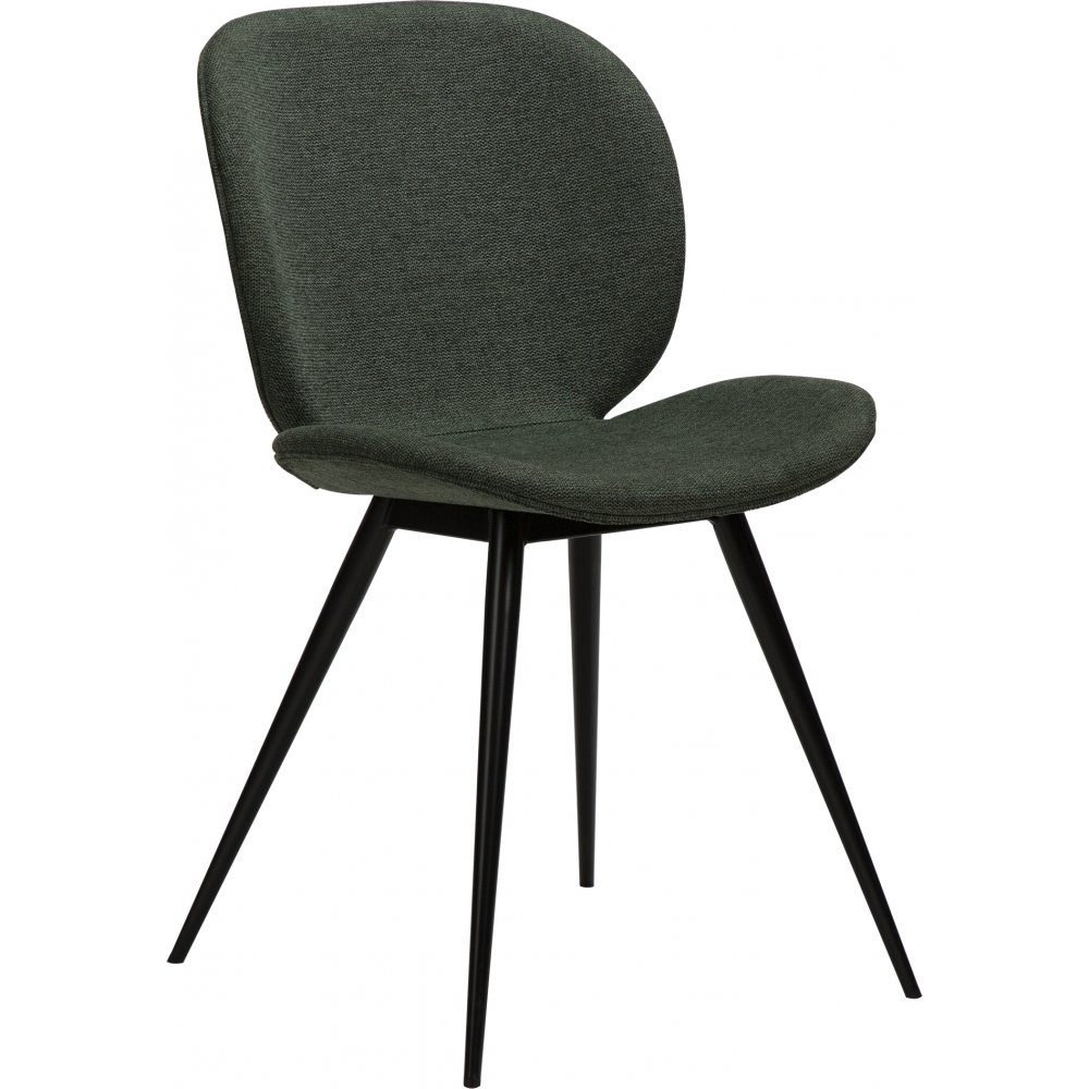 Modern matstol som har en enkel och effektfull form med organiska, rundade hörn på sätet och eleganta koniska, svarta metallben som ger en lätthet i designen. Det är en stol som ser bra ut från alla vinklar utan att dominera utrymmet.