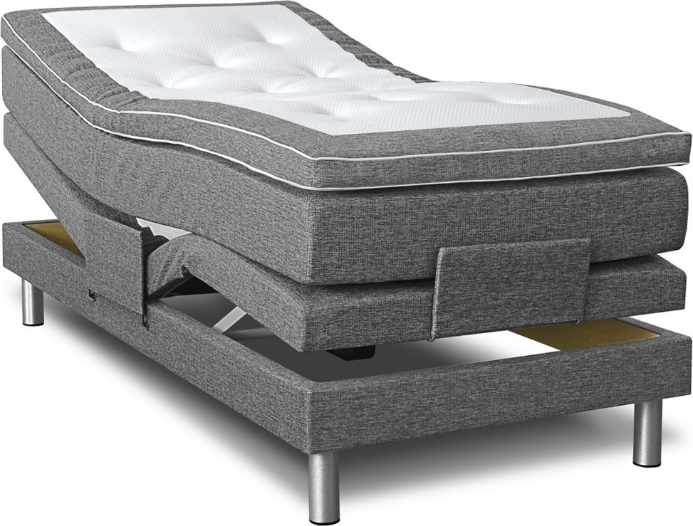 Cloud ställbar säng levereras med en 8 cm hög exklusiv bäddmadrass. Sängen är klädd i ett grått slitstarkt tyg (Rocco GRI281).