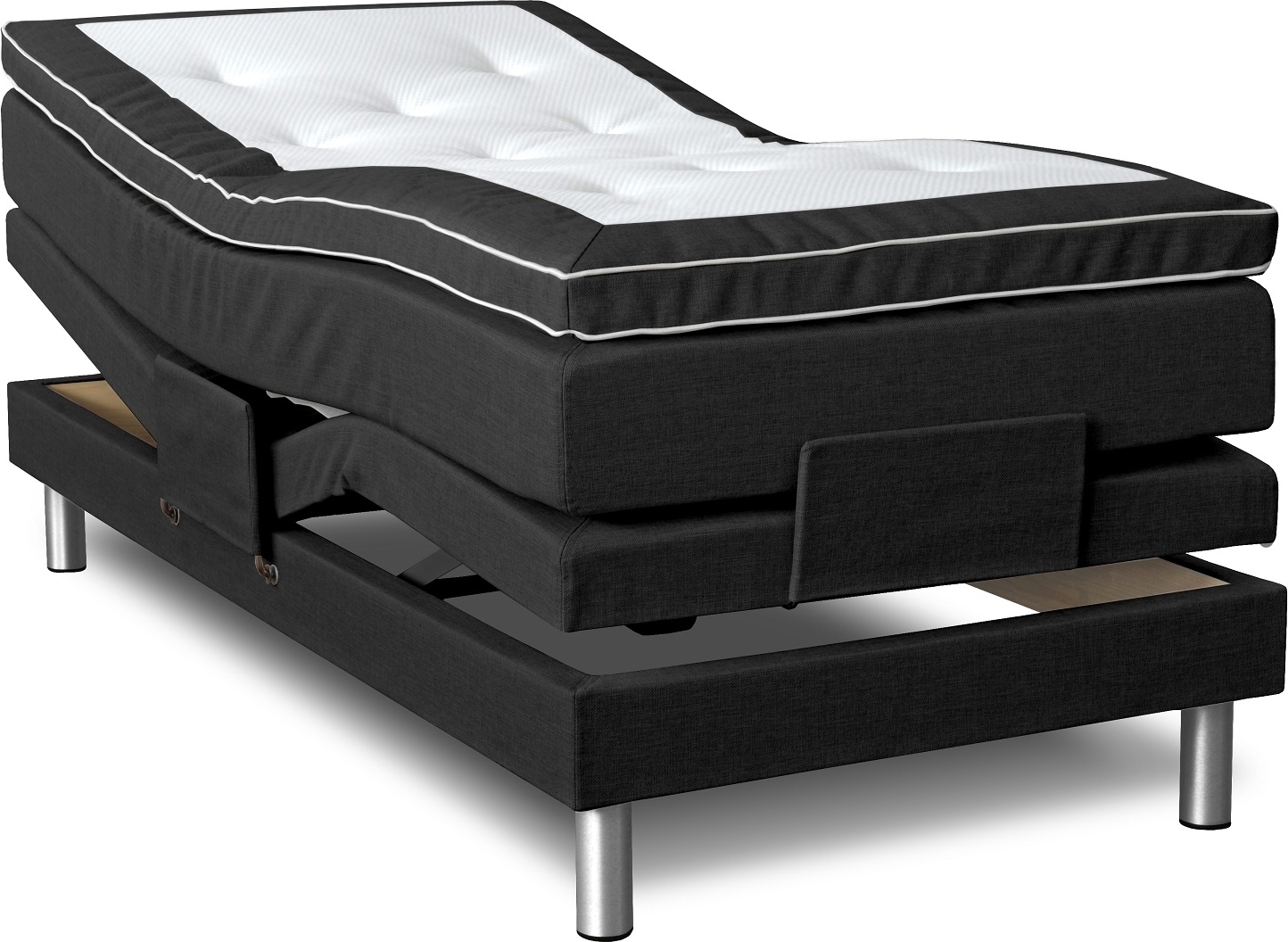 De 16 cm höga metallbenen gör det enkelt att städa under sängen, även med en robotdammsugare. Sängen är klädd i slitstarkt svart tyg (Inari 100) och levereras med en trådlös fjärrkontroll för enkel och smidig justering.