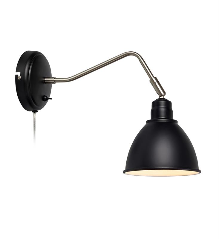 Coast stilren vägglampa. Helt i metall. Vridbar och ställbar. 2 meter transparent sladd med strömbrytare på väggplattan. Max 60W glödljus eller motsvarande styrka i halogen, LED eller lågenergi.