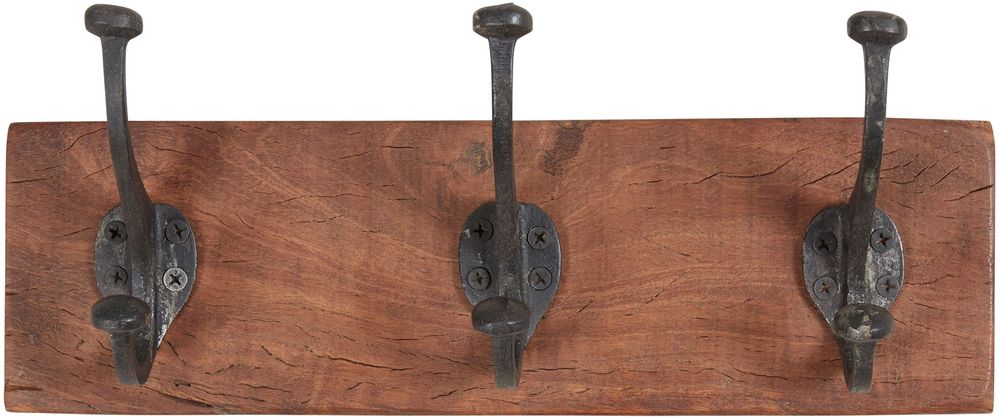 Kroklist med 3 krokar, tillverkad av antikbehandlat trä.