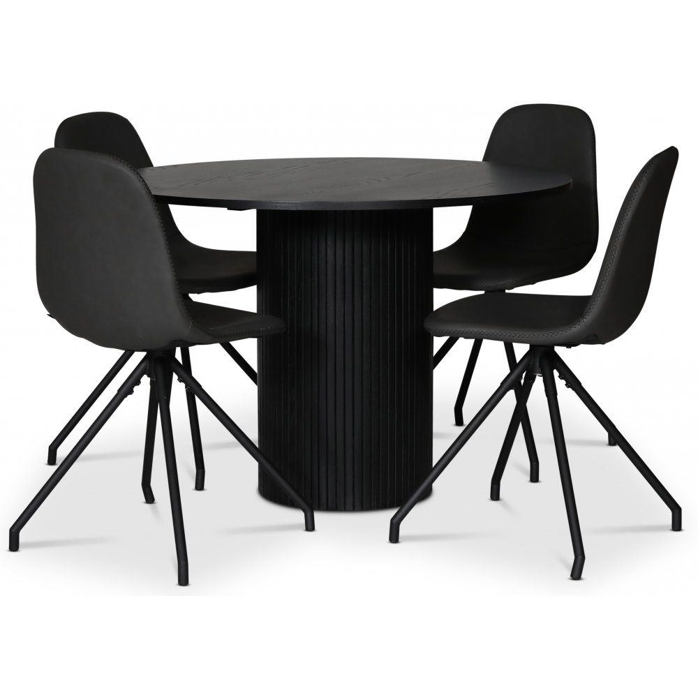Cobe matgrupp; runt matbord i svartbetsad ek + 4 st Bridge matstolar, svart PU