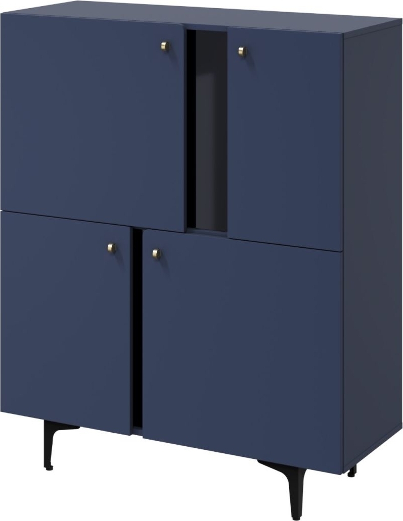Skåp av trä med ben och handtag av metall. Levereras omonterad.