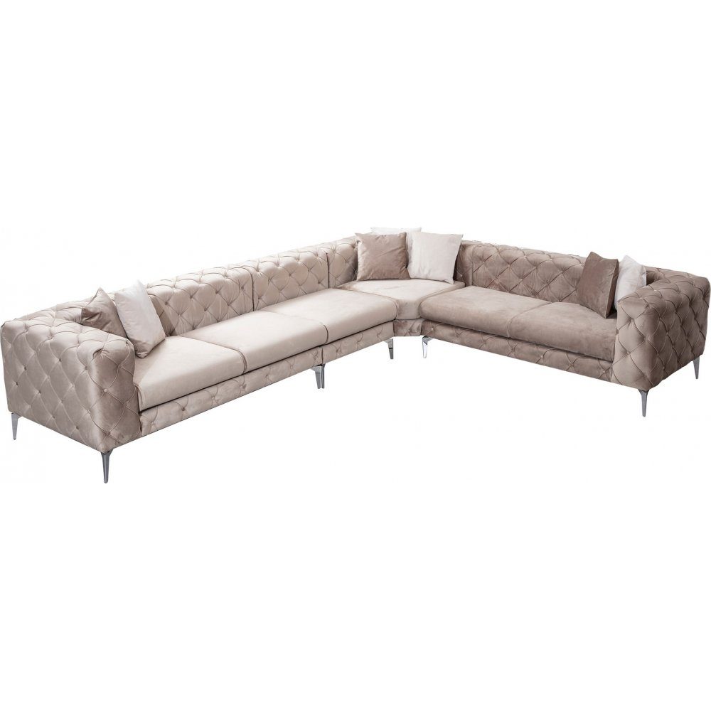 Soffa av bokträ med ben av metall och klädsel av polyester. Soffan har fasta ryggdynor, löstagbara sittdynor och ett tyg som kan kemtvättas. 5 st prydnadskuddar ingår.
