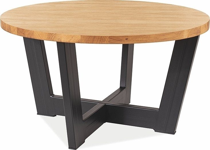 Soffbord i ekträ och metall.