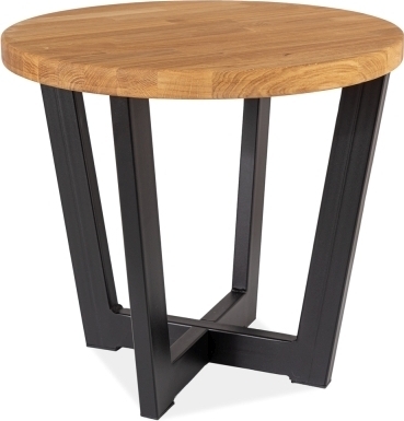 Soffbord i ekträ och metall.