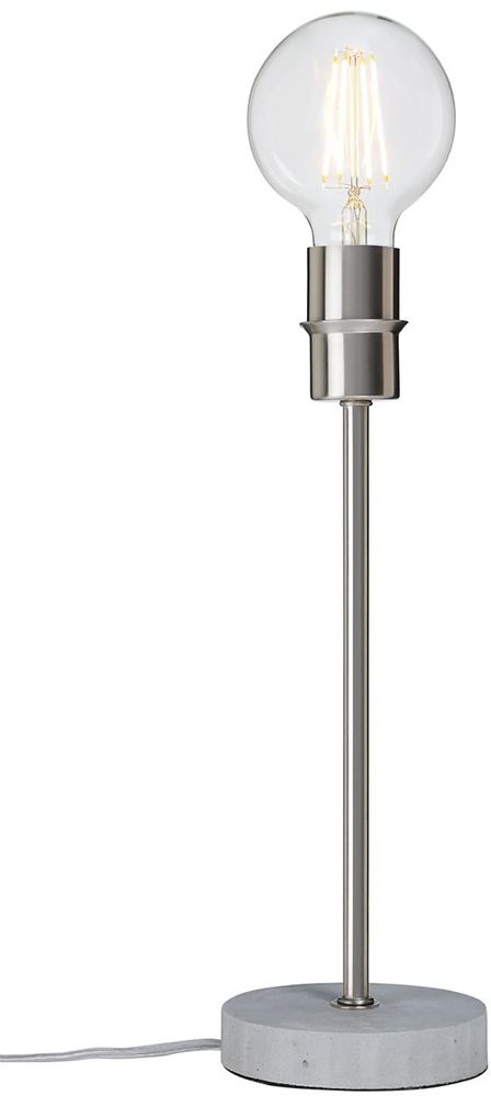 En flexibel bordslampa med en modern design. Foten är tillverkad av betong och halsen är av metall.