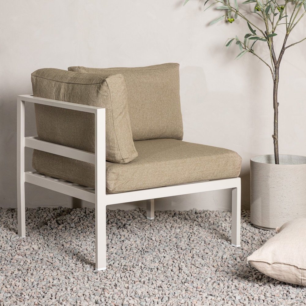 Utmärkt möbelserie för dem som vill umgås många! Bjud över vänner och familj på en fika i solen eller kvällshäng. Den är inte bara praktisk utan även bekväm, en perfekt kombination! Hörndelen Copacabana är beige med gråa kuddar. Skötselråd:Utemöbler i aluminium och rostfritt stål bör rengöras regelbundet med vatten och mild tvål. Skölj alltid noggrant med rikligt med vatten, något som blir extra viktigt om möblerna är placerade på ett havsnära avstånd där salt kan transporteras via luften. Saltet kan leda till korrosion som kan orsaka flagning eller bubblor i lacken. Tvätta inte möblerna med högtryckstvätt, ytan kan skadas av det höga trycket. För maximal livslängd rekommenderar vi att möblerna förvaras i ett torrt utrymme, alternativt under ett möbelskydd. Aluminium är ett lätt material vilket gör att dina möbler blir smidiga att förflytta,