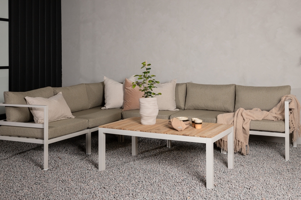 Det är smart att komplettera soffgruppen med lite extra moduler - gör plats och förläng soffan med en hörndel och en mittdel till din utomhussoffa från serien Copacabana! Luta dig tillbaka och njut av de lata sommardagarna medan du upptäcker en ny nivå av lyx och avkoppling där fler får plats. Modulerna är i beige aluminium med tillhörande gråa dynor för extra komfort. Tillverkade av högkvalitativt material som är hållbart och tåligt över tid men kuddarna önskas gärna skyddas mot vädrets värsta sidor som regn och rusk. Här kan du möblera flexibelt med moduler som enkelt plockas bort eller plockas fram beroende på antal gäster och utrymme. Copacabana-serien tar utemöbler till en ny nivå genom att erbjuda en perfekt kombination av stil och funktionalitet!