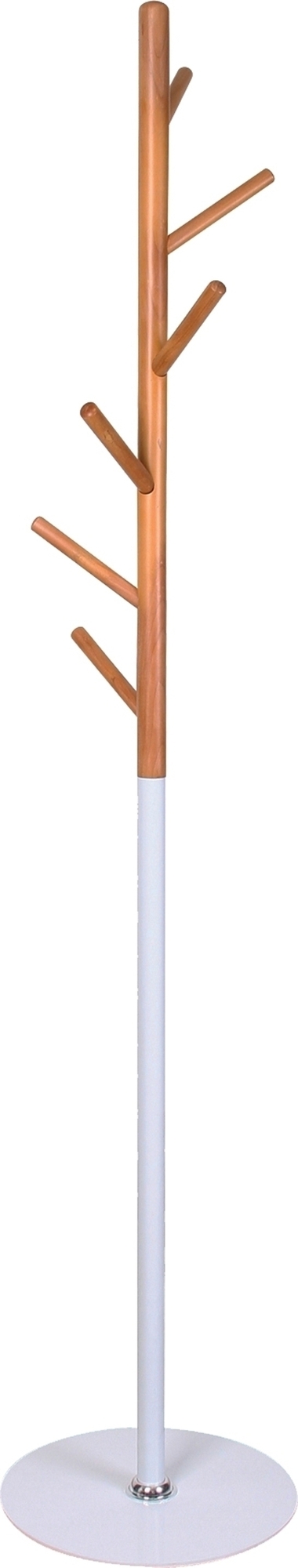 En stilren klädhängare med en klassisk design. Tillverkad i vit metall med detaljer i massiv bok. Rustad med ett flertal stänger för upphängning av diverse ytterplagg. Hängaren passar perfekt in i hallen.