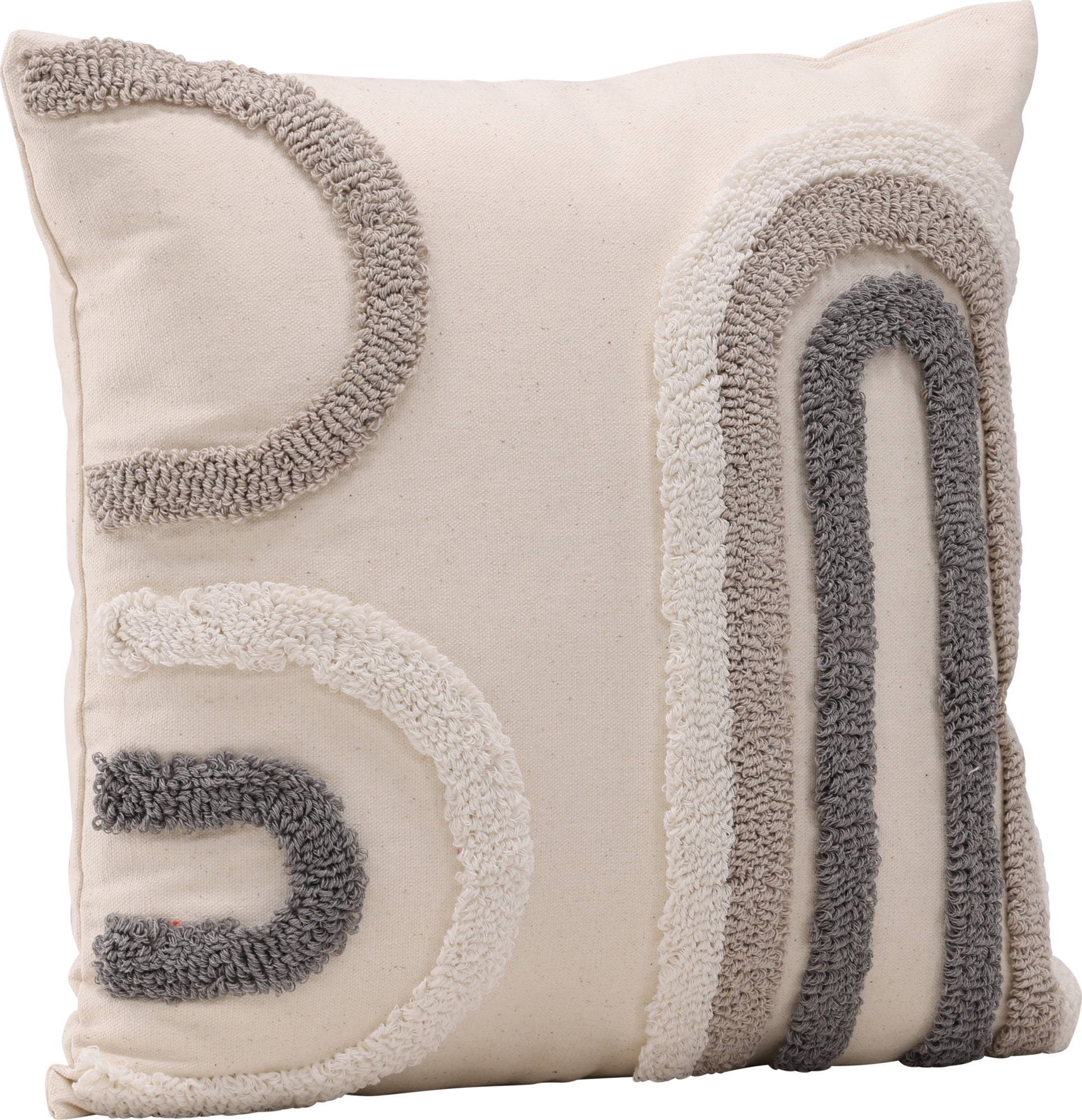 Kuddfodral i slitstark polyester- och bomullsblandning som står sig över tid. Färgbasen är i gräddig vit kulör och det abstrakta, tuftade mönstret skiftar i beige och grått. Matcha med andra kuddfodral i soffgruppen och skapa ett snyggt blickfång i vardagsrummet.