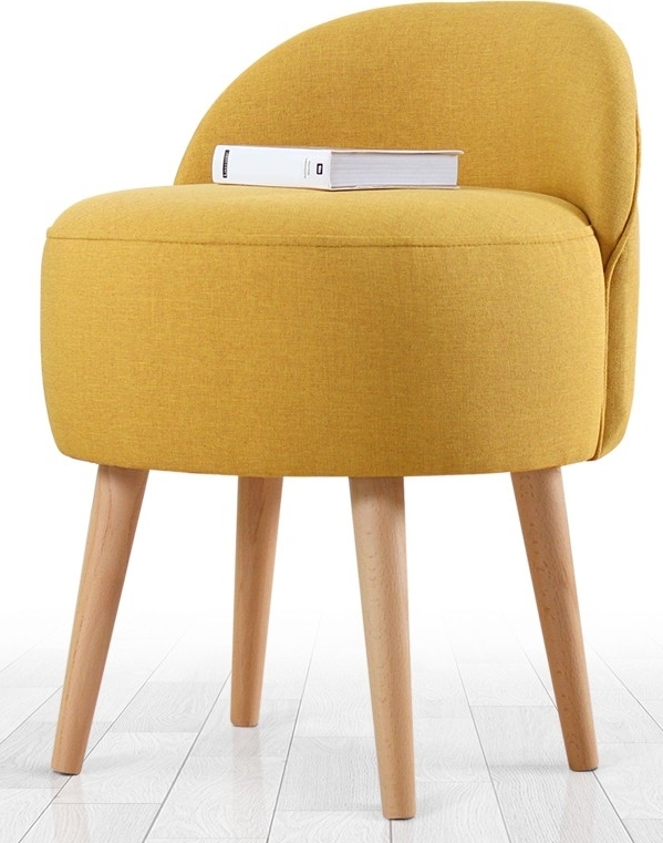 Sittpuff av trä. Klädd med bomull och linne. Stoppning av skum.