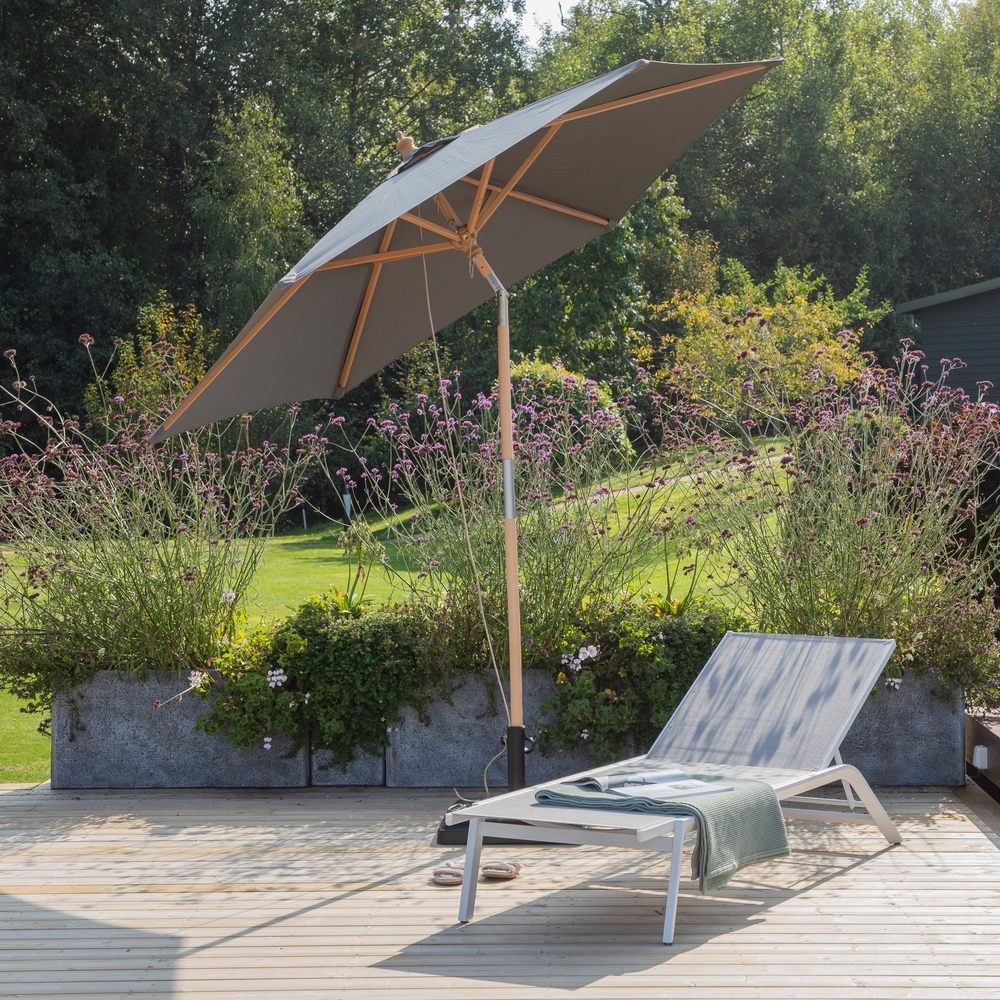 Parasollet Corypho finns här för dig när du vill komma undan solen ett tag! En stilren design med ett grått tyg som passar in på de flesta uteplatser. Parasollet går att luta för att anpassa efter ditt behov. Mått: 250 cmSkötselråd:För våra parasoll rekommenderar vi att man använder sig av parasollskydd. Dra på överdraget när parasollet inte används, det mot sol och minskar därmed risken för solblekning. Överdraget används när parasollduken är torr, annars finns det risk för mögel. Lämna aldrig ett parasoll uppfält när det inte används. Hängparasoll är många gånger känsligare för vindar än vad traditionella parasoll (med pelaren mitt under duken) är.