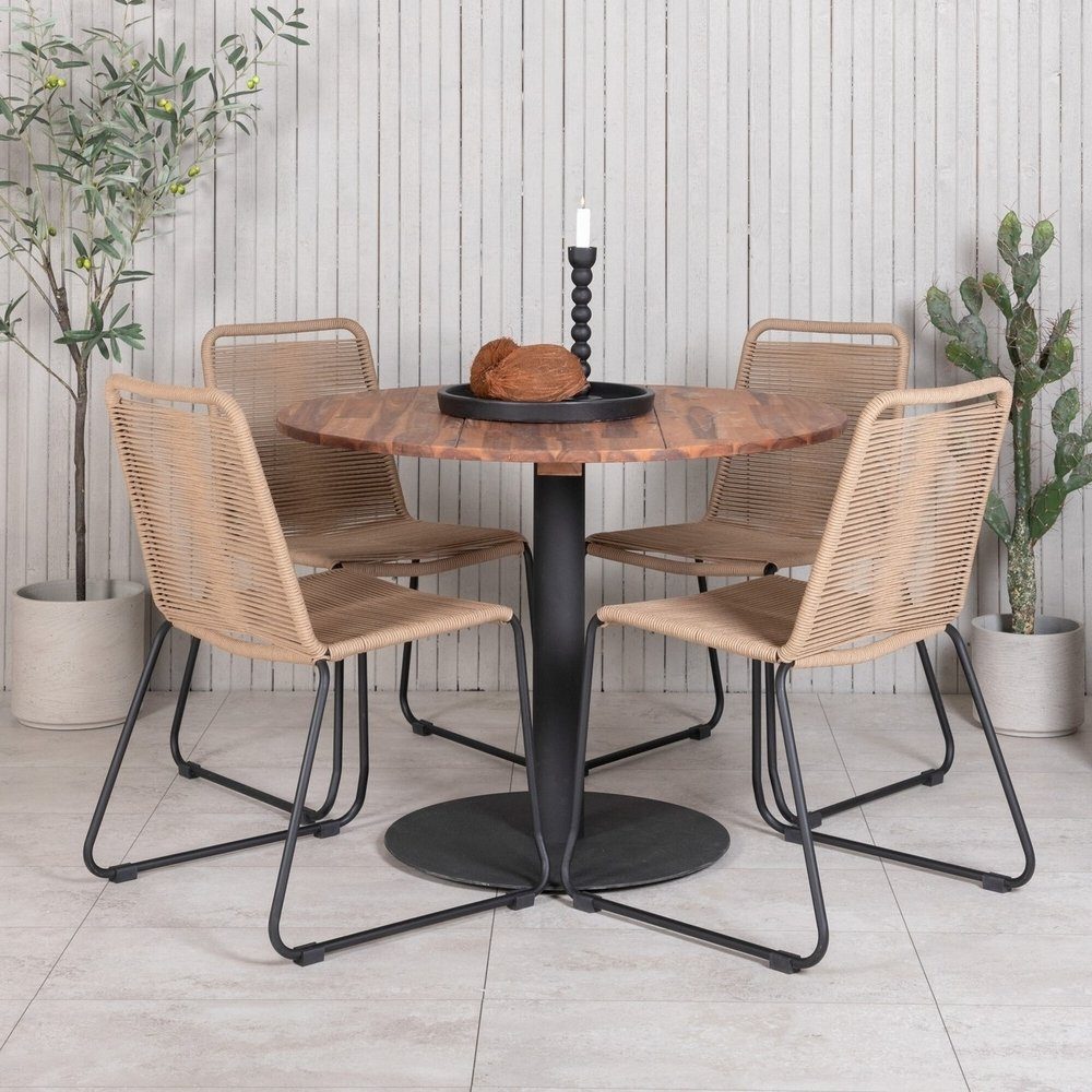 Cot utematgrupp med 4 st Lindos stolar - Beige/Svart/Natur