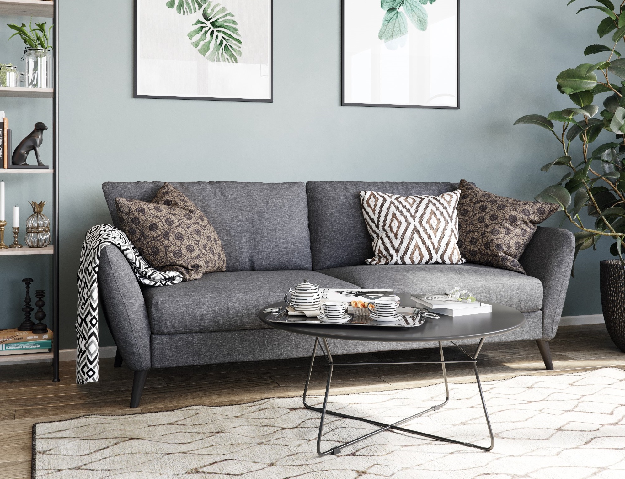 Country 2,5-sits soffa - Grå (tyg) / Svarta ben + Möbeltassar