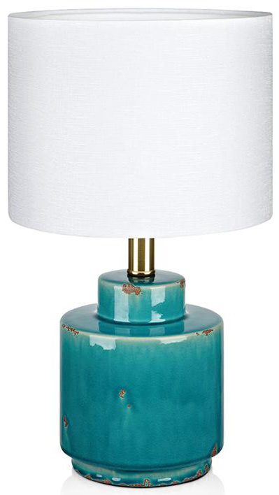 Cous bordslampa med en klassisk design. Foten är tillverkad i blå keramik med en vit textilskärm. 2 meter sladd med strömbrytare på sladden. Stor lamphållare (E27). Max 60W glödlampa eller motsvarande styrka i halogen, lågenergi eller LED.