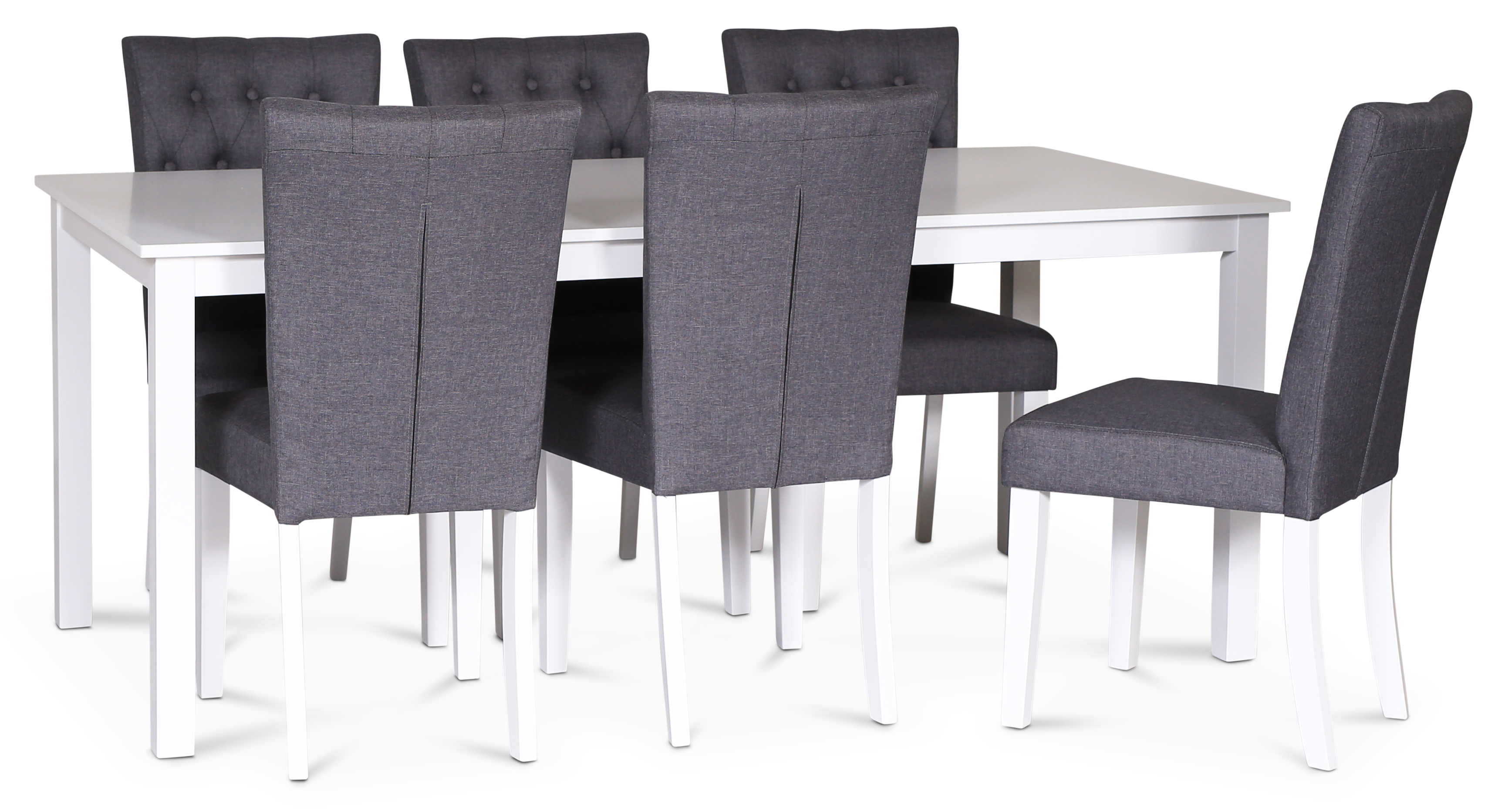 Crocket matgrupp Klassiskt utförande. Stilrent matbord 180x90 cm med vitlackade ben och bordsskiva.