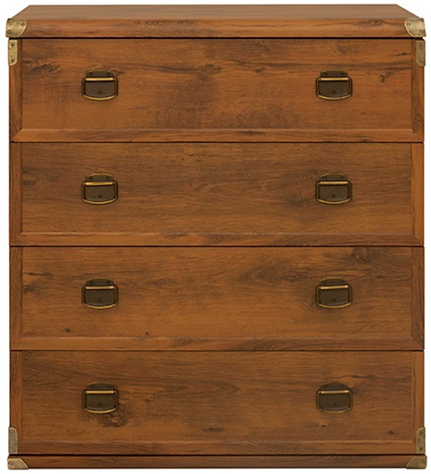 En fin byrå med fyra lådor i kolonialstil med metallbeslag och metallhandtag. En mycket rymlig byrå som passar perfekt in i flera olika miljöer i hushållet.
