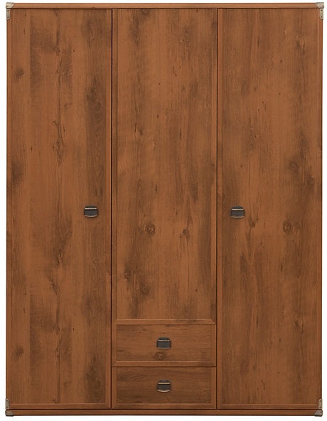 En fin garderob i kolonialstil med metallbeslag och metallhandtag. Garderoben är mycket rymlig med tre dörrar och två mindre lådor. Inuti finns en klädstång med ett hyllplan undertill och på höger sida har man hyllplan över hela vilket gör garderoben mycket funktionell. Dessutom finns en spegel på insidan av en av dörrarna.