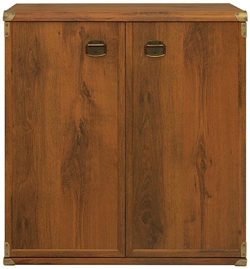 Ett fint skåp med dubbeldörrar i kolonialstil med metallbeslag och metallhandtag. Skåpet är inrett med ett hyllplan som hjälper dig få ordning på dina föremål.