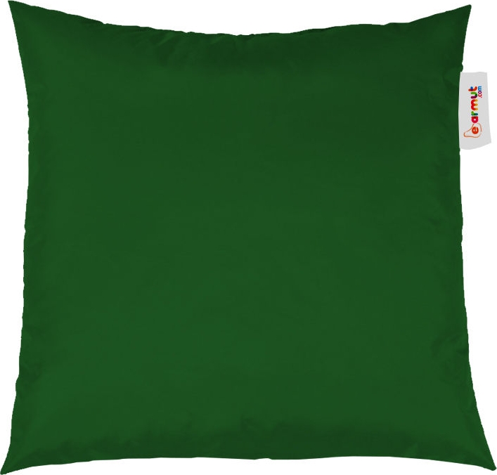 Sittpuff med klädsel av polyester och stoppning av frigolit.