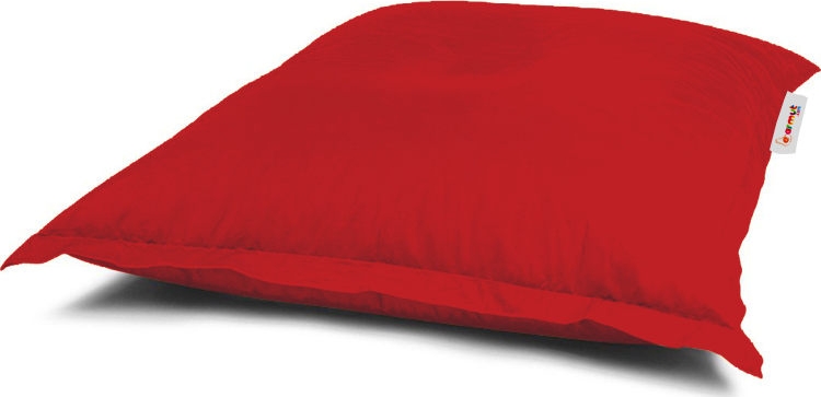 Sittsäck med klädsel av polyester och stoppning av frigolit.