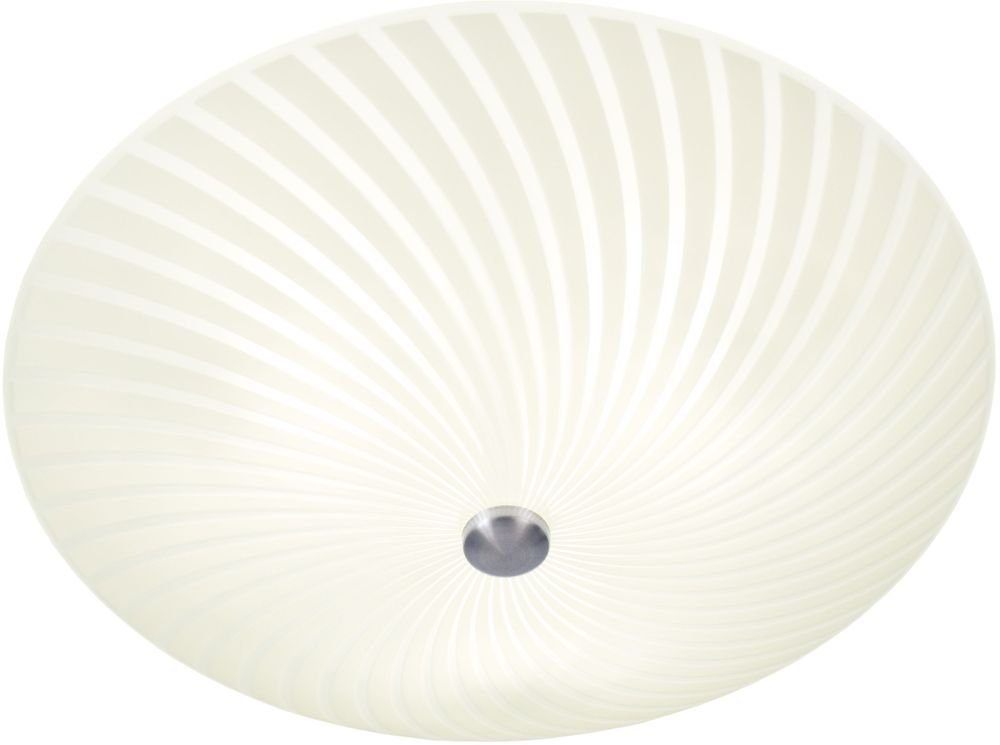 Taklampa i metall och vitt glas med mönster. Monteras lätt i taket.