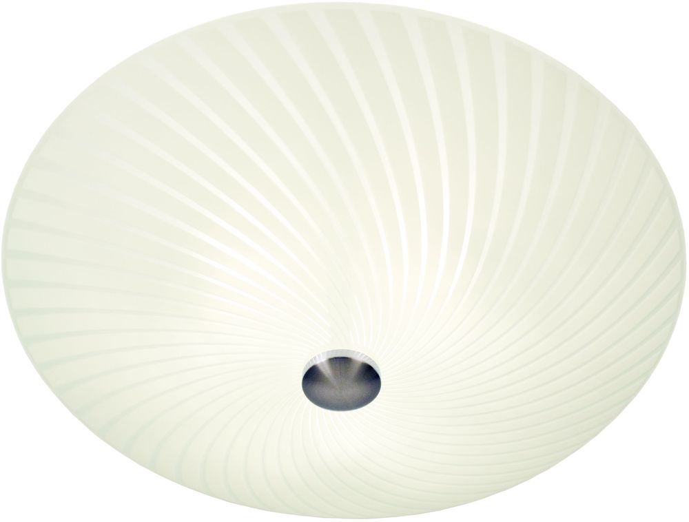 Taklampa i metall och vitt glas med mönster. Monteras lätt i taket.