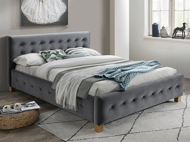 Sängram i trä. Klädd i polyester. Kombinera med en madrass som passar just dig. Madrass köpes separat.