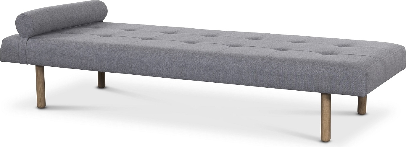 Daybed Vila är en trevlig och stilren dagbädd med modern design som ger ett stilrent intryck. Perfekt att använda som extra säng eller sittplats. Runda träben i oljad ek. Grått slitstarkt tyg. Cylinderformad kudde ingår i likadant tyg som dagbädden.