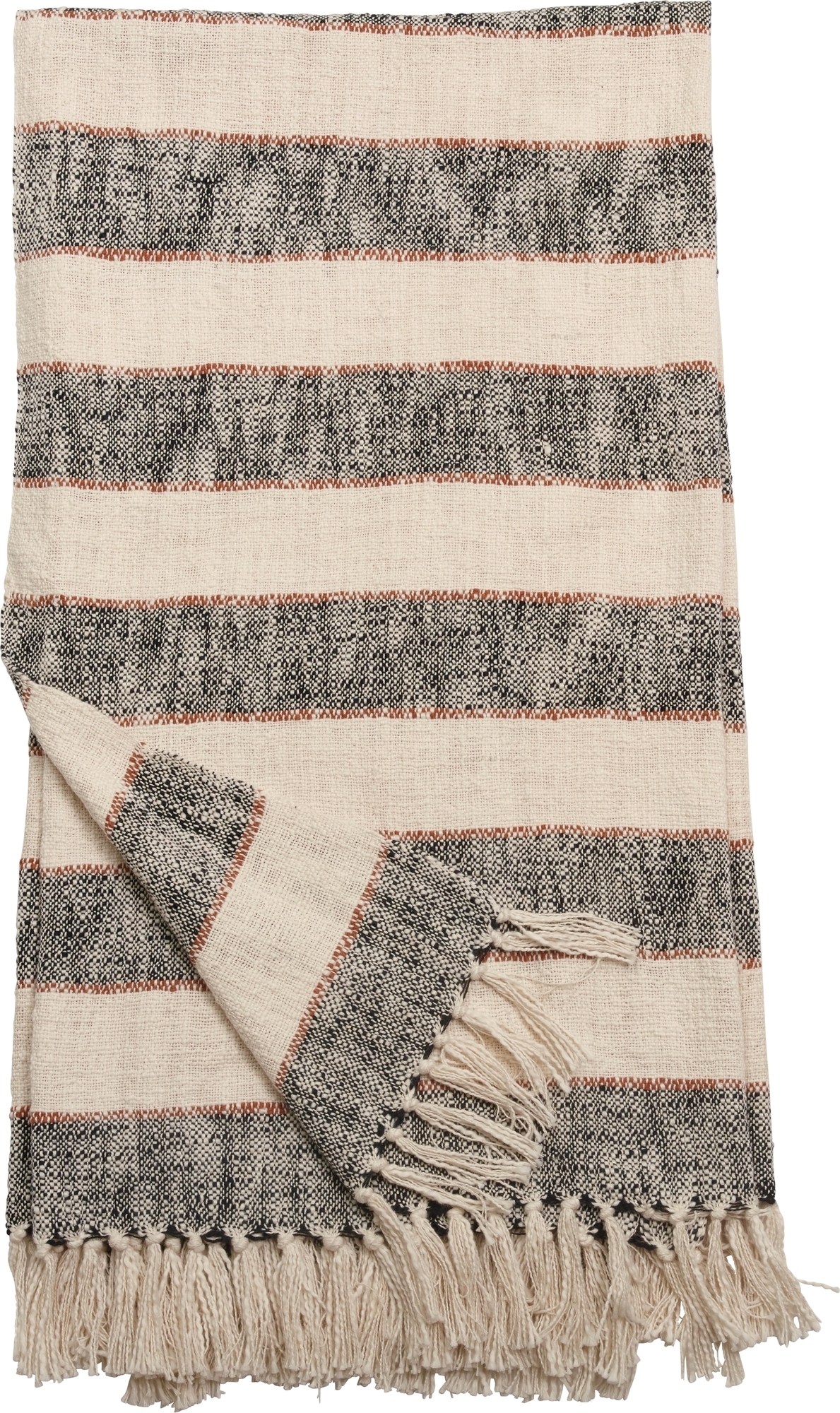 Mysig vävd randig pläd i en skön bomullskvalitet. Fin till soffan inne eller ute.