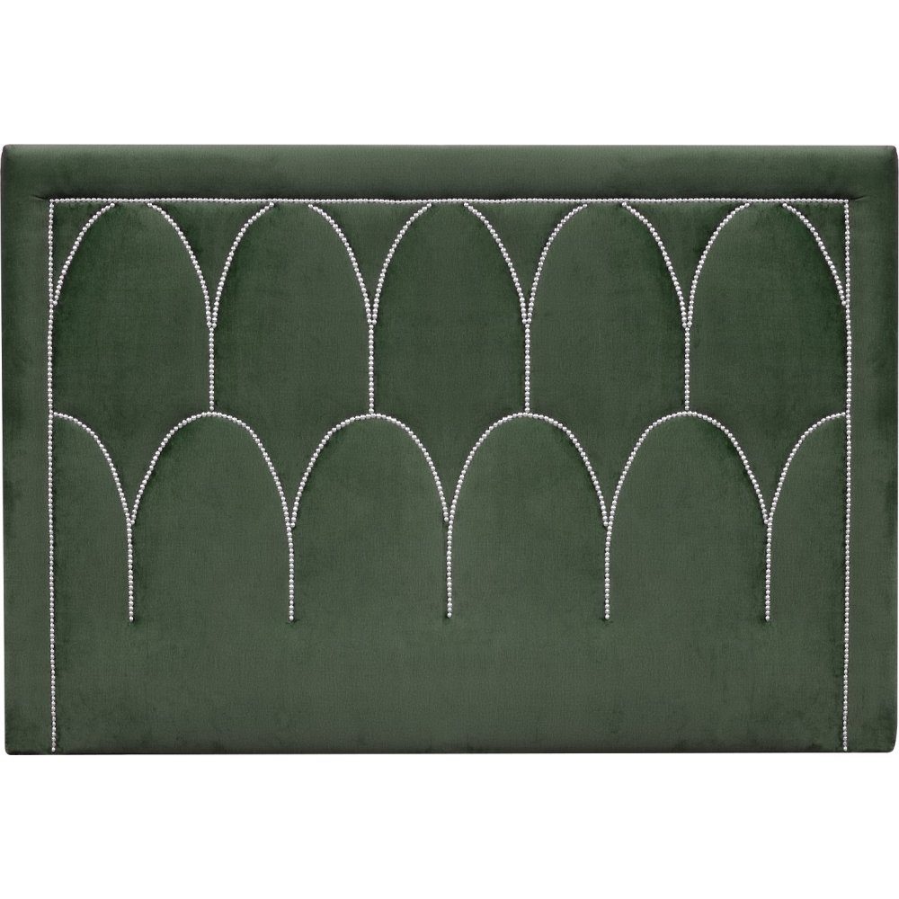 Sänggaveln Dalarö är klädd i ett mjukt, smaragdgrönt sammetstyg som direkt ger sovrummet en exklusiv och harmonisk känsla. Det dekorativa nitmönstret adderar en sofistikerad detalj och förstärker den lyxiga karaktären. En stilren och genomtänkt design som gör sängen till rummets självklara blickfång.