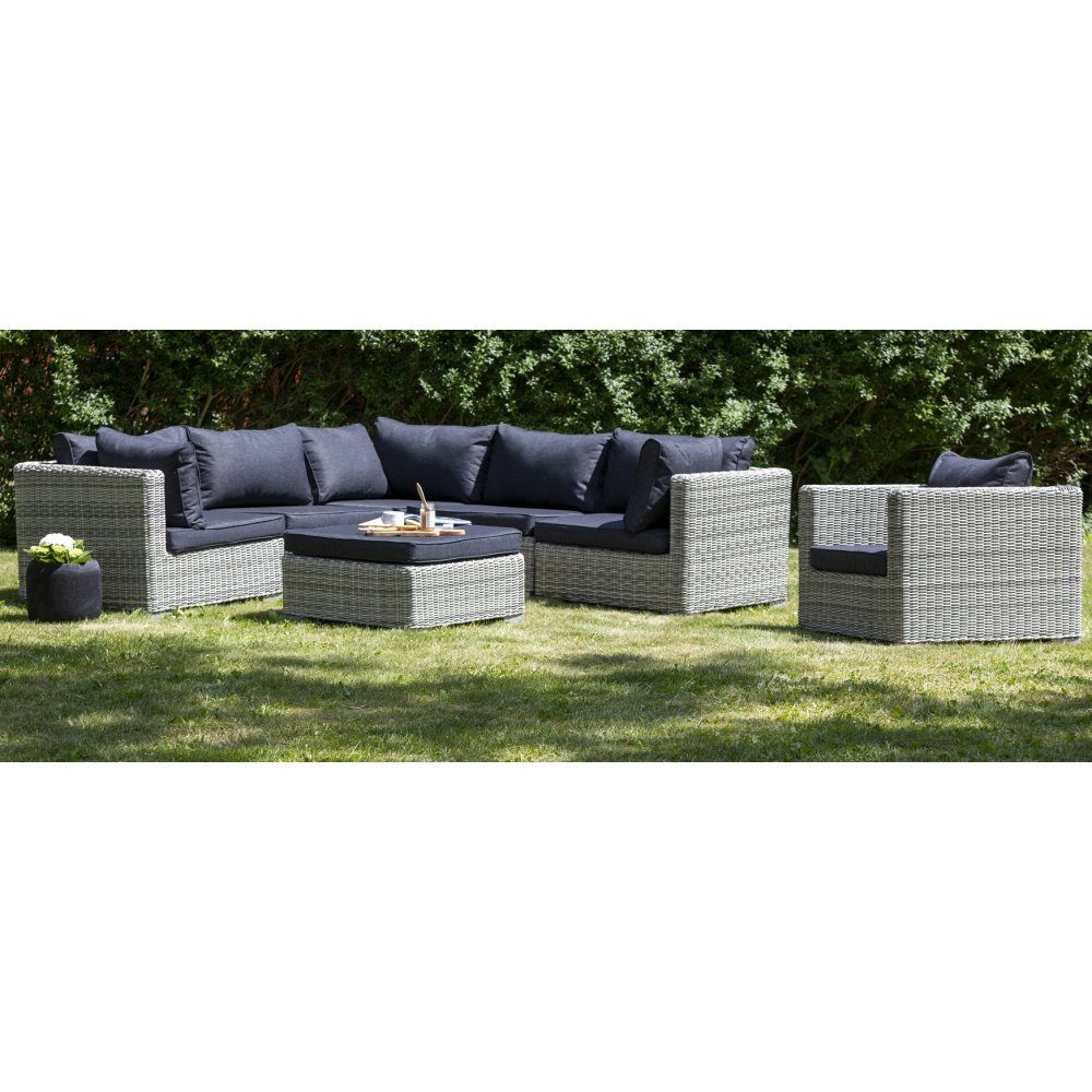 Dallas utegrupp hörnsoffa med fåtölj och bord/fotpall - Ljusgrå konstrotting