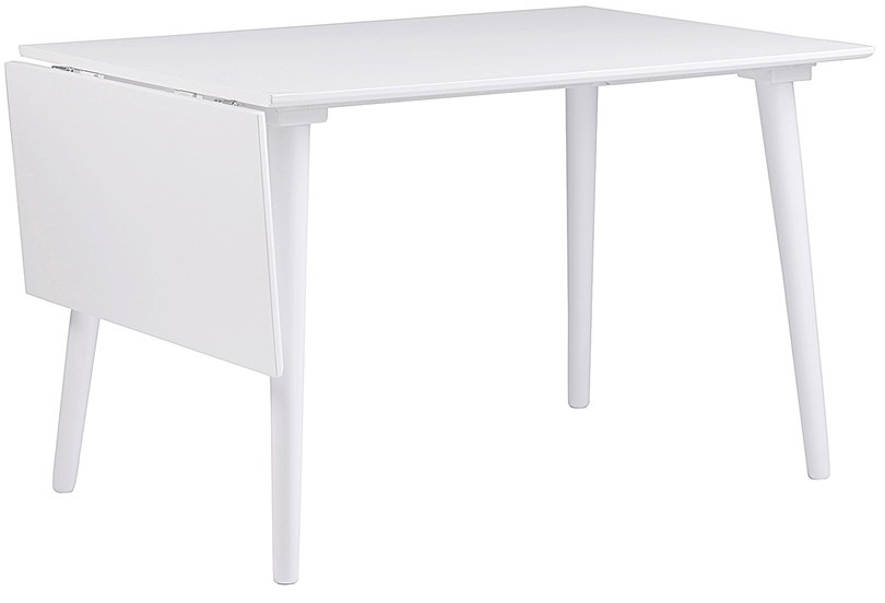 Klassiskt matbord med klaff i vitlackat massivt trä. Vår Dalsland-serie är en komplett serie av pinnstolar, karmpinnstolar och matbord i en mängd olika färger!