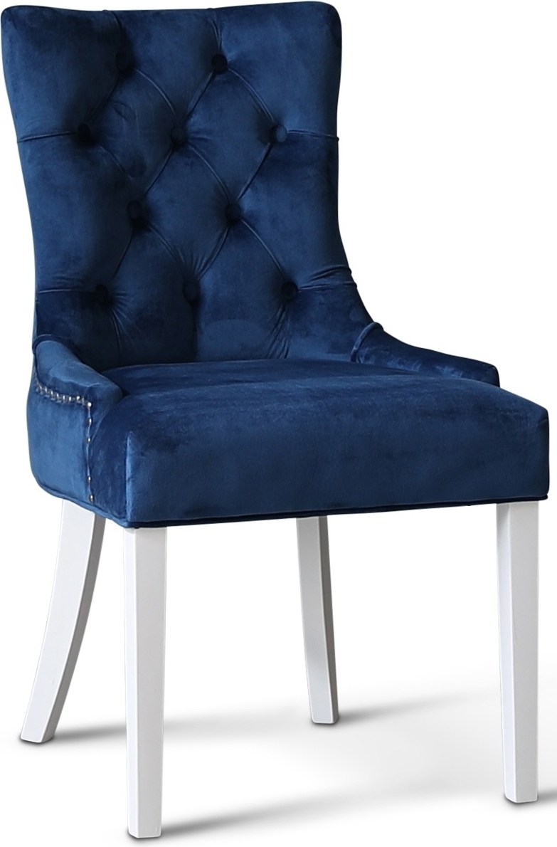 Dalsland matgrupp: Matbord i vit / ek med 6 st Tuva stolar i blå sammet