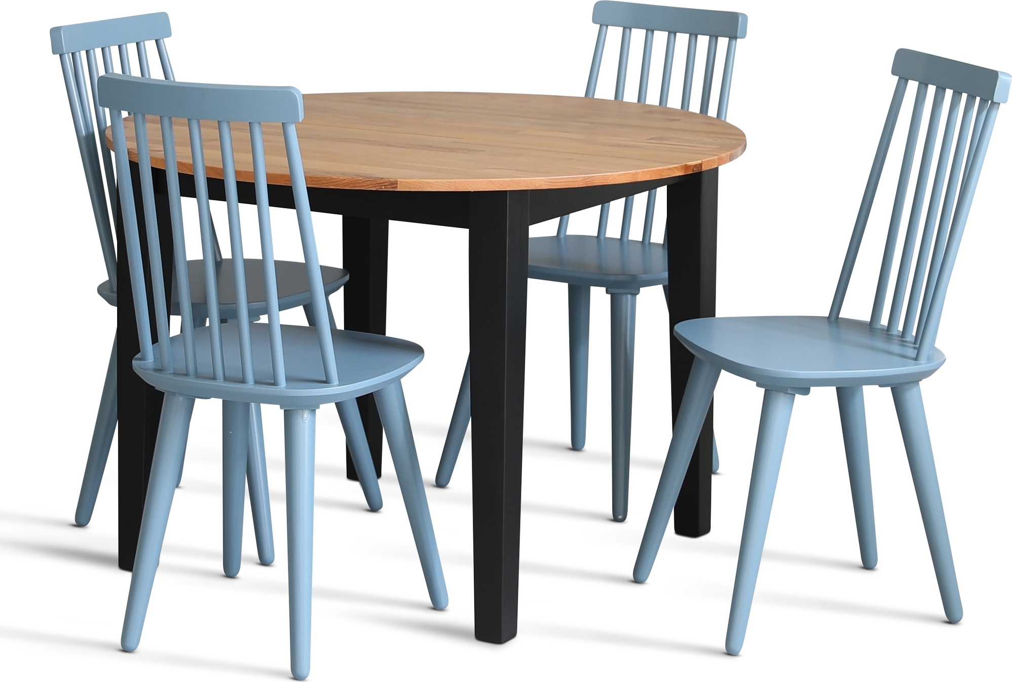 Dalsland matgrupp: Runt bord i Ek / Svart med 4 st duvblåa Pinnstolar