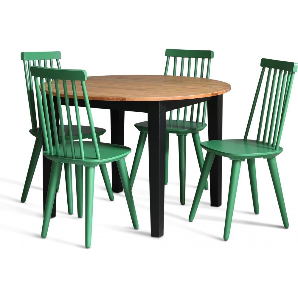 Dalsland matgrupp: Runt bord i Ek / Svart med 4 st gröna Pinnstolar