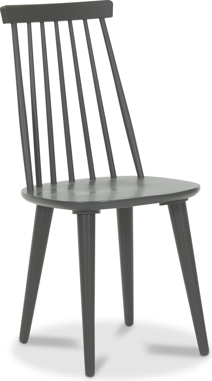 Trästolen är tillverkad i massiv heveaträ som är slitstarkt och kvalitativt, med en fabriksmålad yta i snygg grafitgrå finish.