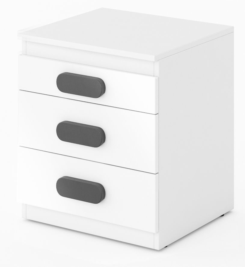 En snygg byrå med en modern design. Tillverkad i MDF med högglans vit front och goda förvaringsmöjligheter i form av tre lådor.