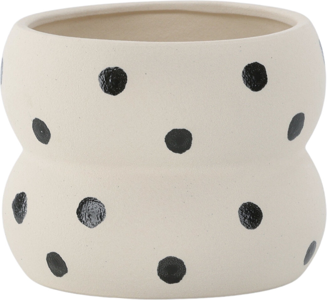 Möt Dapne, den perfekta krukan för att addera en touch av kreativitet och lekfullhet till ditt hem. Dapne kommer i flera färger, vilket gör det enkelt för dig att hitta din personliga favorit. Den vita krukan med svarta prickar är särskilt sofistikerad och skapar en lekfull atmosfär. Med en generös diameter på 16 cm ger Dapne gott om plats för dina gröna favoriter. Tillverkad i stengods, kombinerar den ett praktiskt tillskott med en stilfull design, vilket gör den till det perfekta valet för både blommor och gröna växter. Dapne är mer än bara en kruka, den är en möjlighet att låta din personliga smak lysa igenom. Välj din favoritfärg och låt Dapne bli det perfekta hemmet för dina växter, samtidigt som den förhöjer din inredning med stil och mångsidighet.