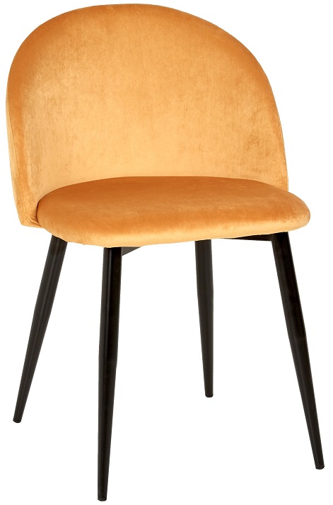 Darling stol i ett populärt utförande. Klädsel i lejongult lyxigt sammets tyg med matchande svarta stålben.